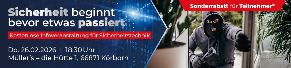 *Für alle, die am 26.02.2026 am Infoabend für Sicherheitstechnik teilnehmen, gibt es bei Abschluss eines Auftrages in 2026 einen Funk-Rauchmelder zur Anbindung an eine Telenot-Einbruchmeldeanlage gratis.